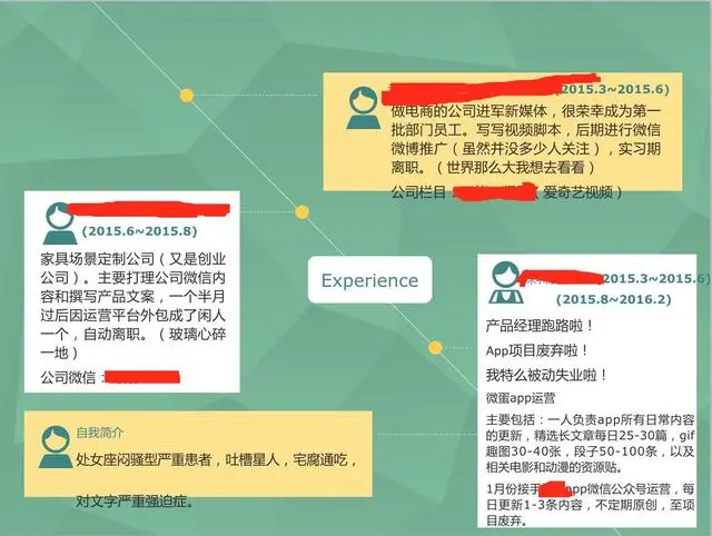 还有一个更极端的,每个工作经历都写满了对公司和项目的不满