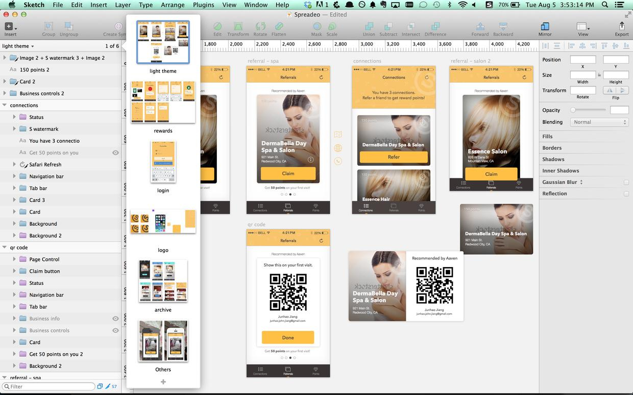 关于 Sketch 和 Photoshop 的比较网上有很多,我就不赘述了。机缘巧合的是我正好那段时间在 Medium 上又看到了一篇夸赞 Sketch 的文章,并在简单搜索之后,发现了不少非常棒的 Sketch 的免费素材资源,于是选择了它而不是 PS 来为 Spreadeo 做设计。