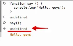 這個 function 就稱作 expression statement 屬於一種特殊的 statement ,這個 function 自然可以 return 一個值,同時也可以在內部產生一些 side effect,不過如果我們重點擺在一些 side effect 部分時,通常就會回傳 undefined。如下圖