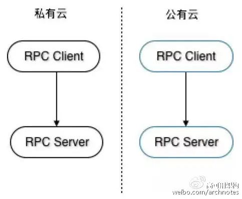 在混合云平台建设过程中,RPC 服务需要适应云端部署,在实际部署当中对 RPC 提出了一些新的要求。混合云平台包括私有云与公有云两部分,其中私有云在本地机房,为了保证云与云之间通信的稳定,使用了专线的方式链接私有云与公有云。RPC 服务在云端扩容大致有如下三种情况: