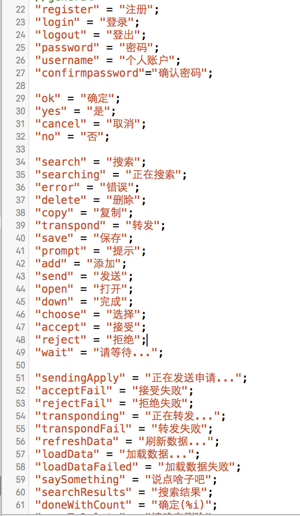 关于上述的key和value,只是示范,可自行定义,调用这些key-value需要利用NSLocalizedString(<#key#>, <#comment#>)