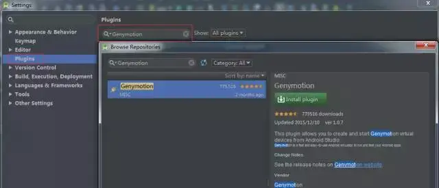 安装步骤:Android studio-Settings-Plugins-搜Genymotion-Install Plugin