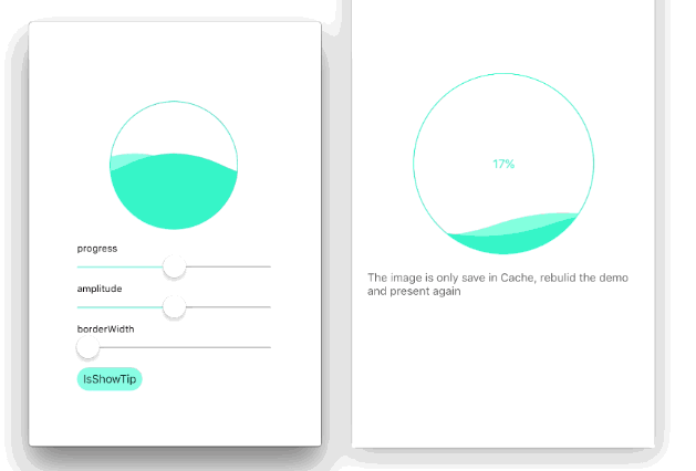 开发者@潜艇_刘智艺Zzz 将 WaveLoadingView 圆形波浪进度指示器开源在Github 上,配置参数丰富点击这里查看。