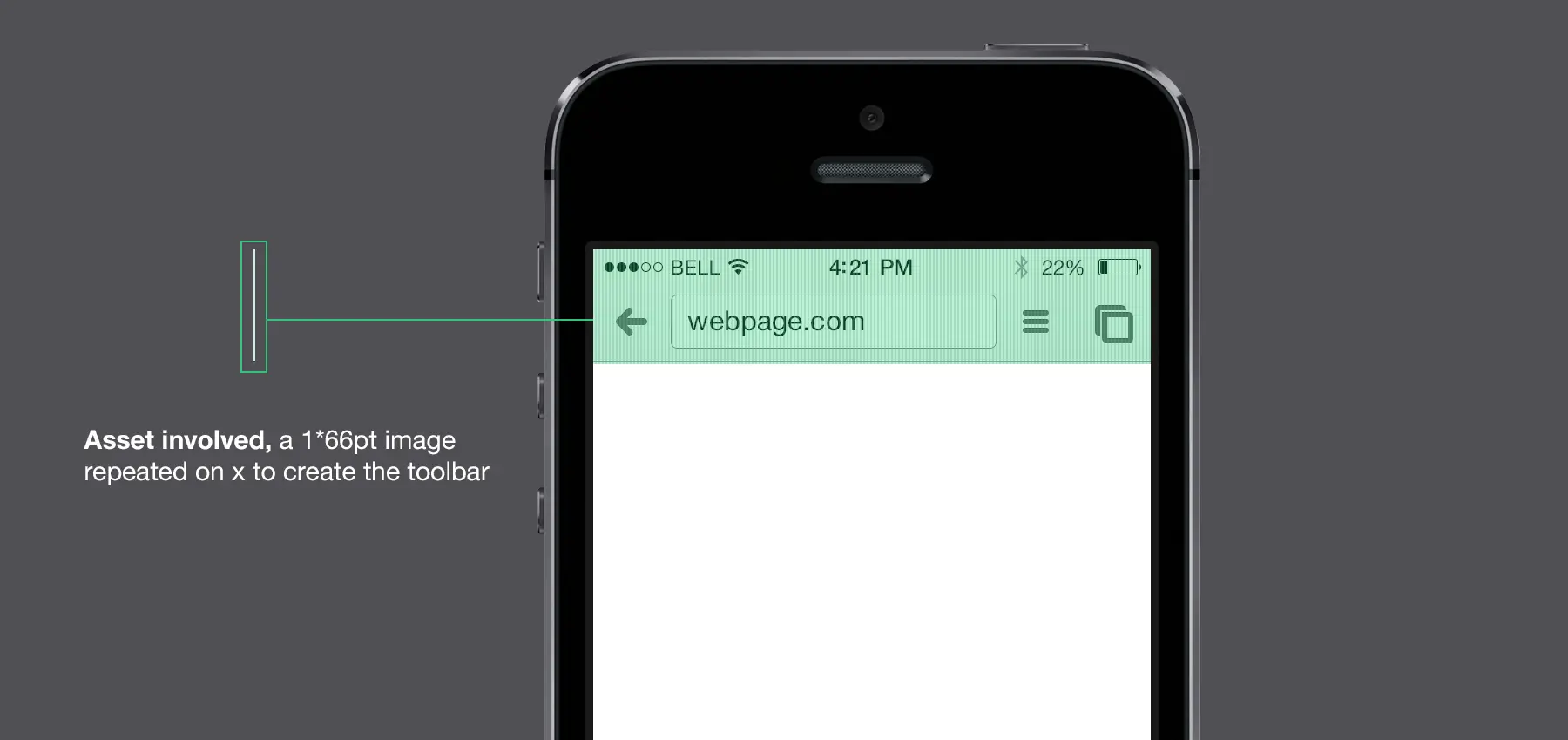看看下面这个Chrome的例子。iOS上的工具栏在整个屏幕上只用了一个在x轴上平铺的超细资源。
