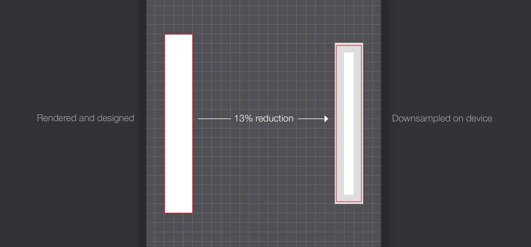 物理分辨率比渲染分辨率小15%,会造成一些细节问题,比如半像素使得精细的地方变模糊。分辨率如此高也是很微妙的,除非你近距离观察。因此,在2208*1242px的画布上设计,需要注意设计中真正精细的地方,像是分隔符。模拟如下: