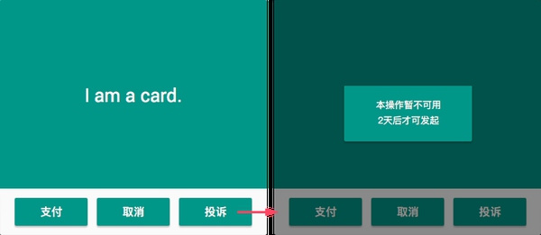 虚拟场景:某订单页面,商品订单以卡片的形式罗列,每个卡片下方有若干操作按钮,如支付、取消、投诉等。根据规则,投诉按钮必须在订单产生2天后才可使用。
