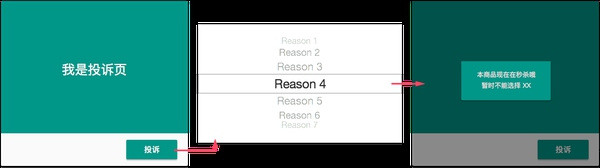 虚拟场景:对商家或商品进行投诉之后,需要用户选择投诉原因,如态度不好、价格变动、缺货等。其中,在某些特殊时间段内,如该商品本身就是秒杀商品,用户发起投诉时则不能选择『缺货』原因。