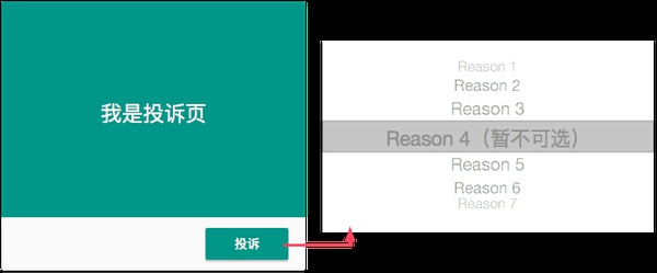 现状:线上目前没有这个功能,即所有的投诉原因都是可选的,选择组件使用的是 picker,大概如下图的样式(最常见的就是选择时间啦)。