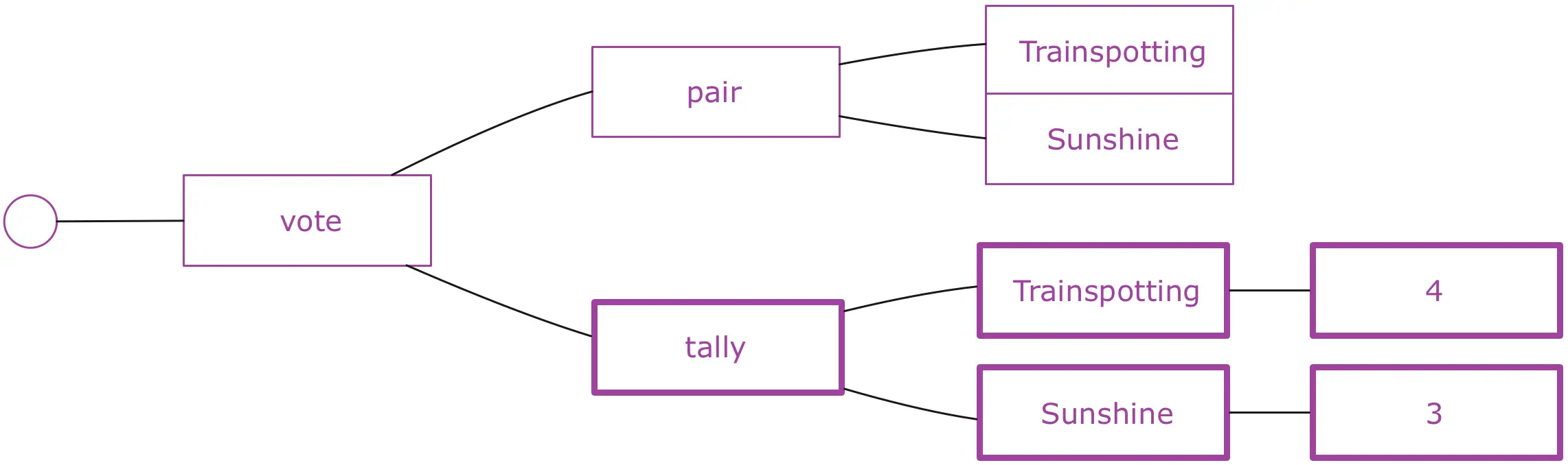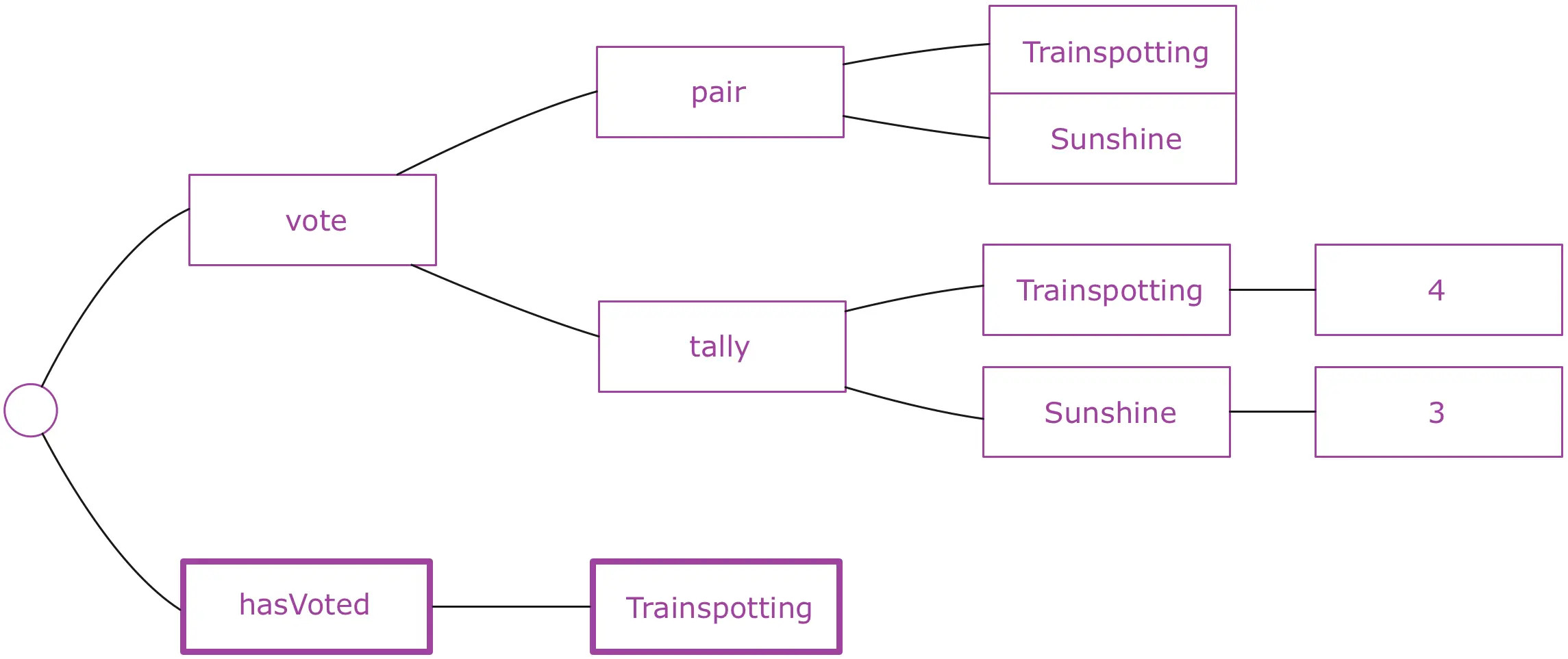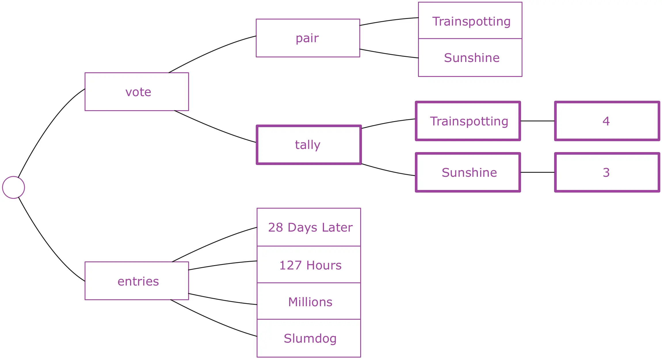 After the votes have started coming in, the tally of votes should be stored as well. We can do that with another data structure inside the vote: