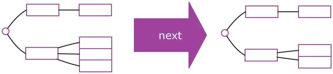 This means any two successive states of the application are stored in two separate and independent trees. How you get from one to the next is by applying a function that takes the current state and returns a new state.