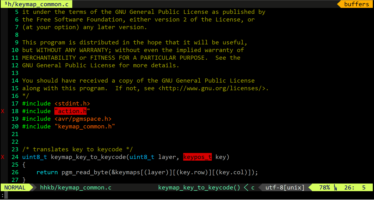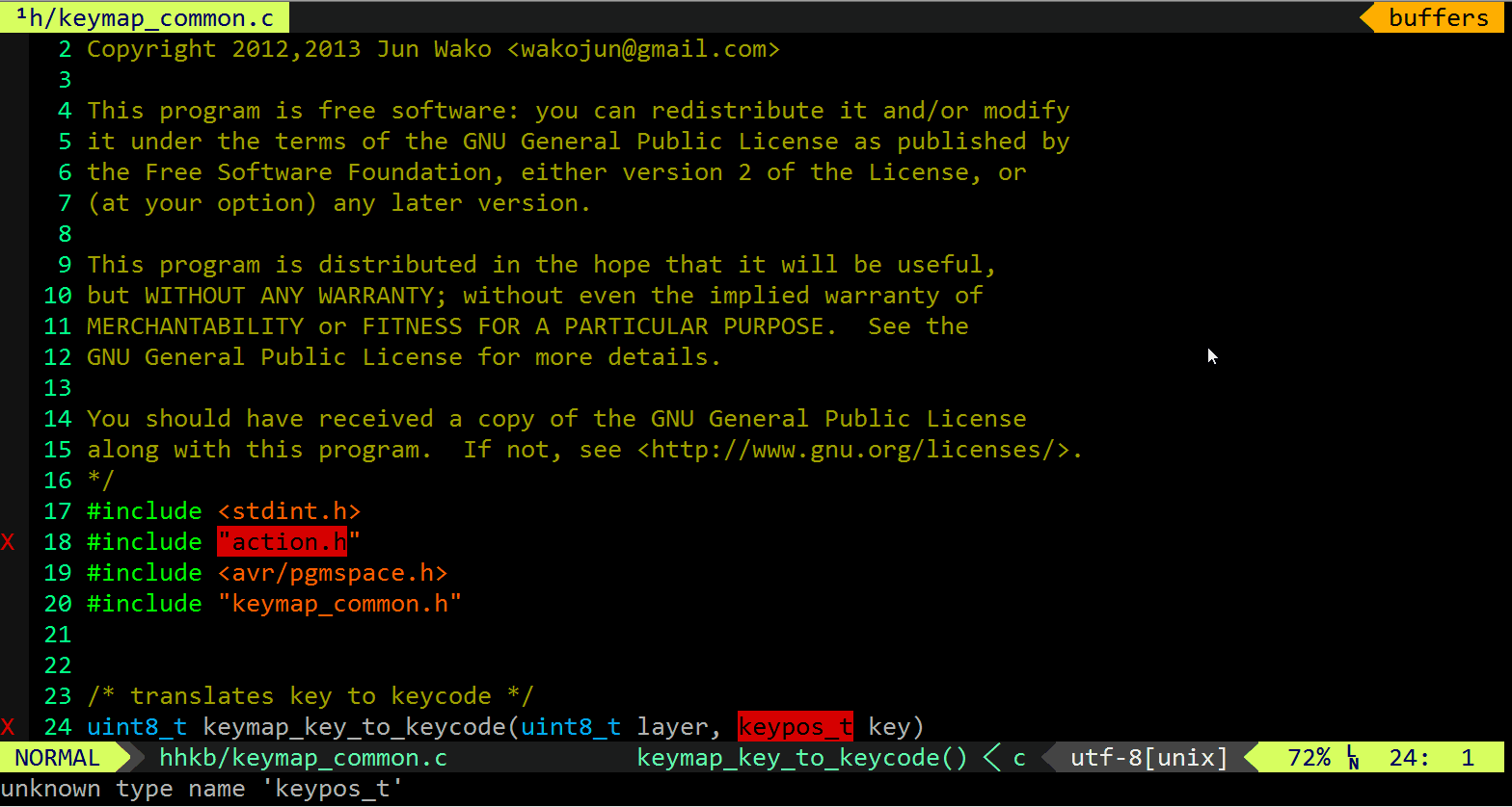 这两个插件合起来真是双剑合璧对程序开发效率的提高起了极大的作用。YCM可以做到基于语义的补全、跳转,文件名补全,实时的出错提示。注意基于语义的补全是很强大的,得益于Apple的Clang。注:Clang 是一个 C++ 编写、基于 LLVM、发布于 LLVM BSD 许可证下的 C/C++/Objective C/Objective C++ 编译器,其目标(之一)就是超越 GCC。由于使用了Clang所以这个插件在离线安装模式下(因为开发机没有网络,或者Proxy不太好用)就复杂一点,需要先安装最新版本的GCC才能编译Clang。