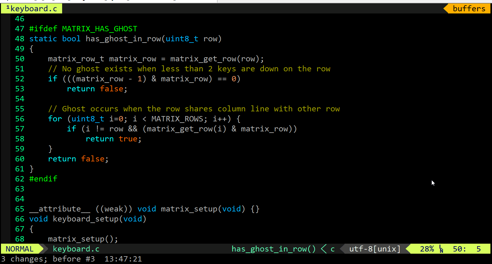 本文不是vim教程,所以这里只是举例,展示vim大概是个什么 样子的东西。具体的光标的移动,以及文字的增删查改,自己对照手册很快就可以学会。由于每个人的使用目的和使用习惯千差万别,所以每个人使用的命令也都完全不一样。