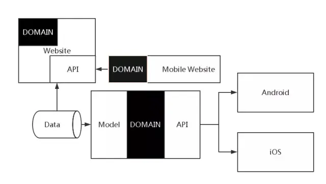 第三阶段: 手机应用的制作开始流行起来了。由于需要制作手机应用,人们就需要在网站上创建API。由于当时的业务或者项目需求,这个API是直接耦合在系统中的。
