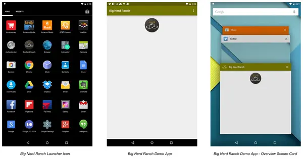 从 Lollipop 起,我们有了更精致的总览画面。更重要的是,新的 API 可以让我们自定义总览画面”卡片”的 icon,title 和 顶部栏(top bar)的颜色。