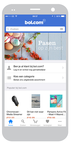 If search is a primary function of your app display it prominently, as it can be the fastest route to discovery for users. E-commerce apps should feature search at the top of their home screen.