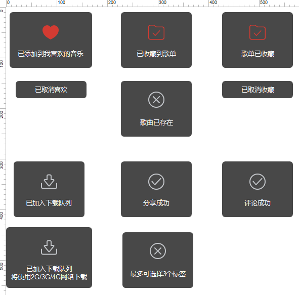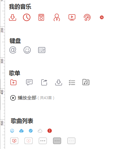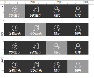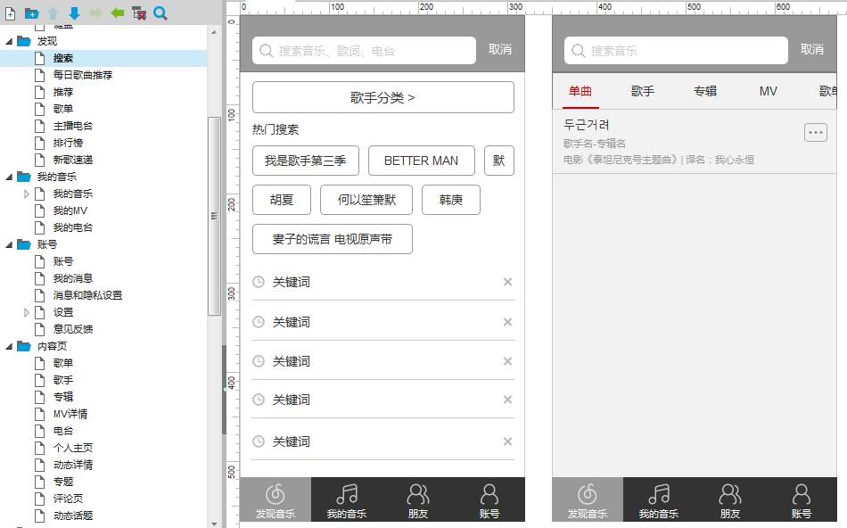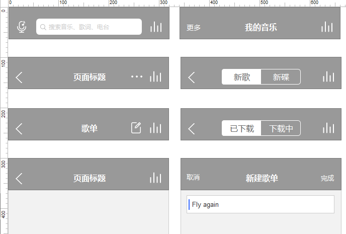 上面所说的“重复劳动”对不同人来说可能定义不尽相同。比如对我来说,即使把Tab的选中状态变一下,也是一种重复劳动。那我就会把不同Tab的选中状态都做一份。这样等到要制作“我的音乐”相关交互的时候,直接把下面第二个组件拖过去就可以了。
