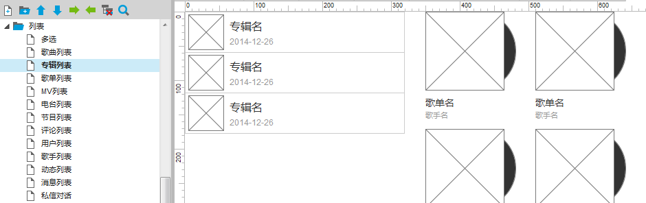另外,一些常用的主界面和内容页我也会做成组件。这样当我要拿搜索页说事儿的时候,就可以直接把整个搜索页拖过去,而不需要花时间再搭一遍积木了。