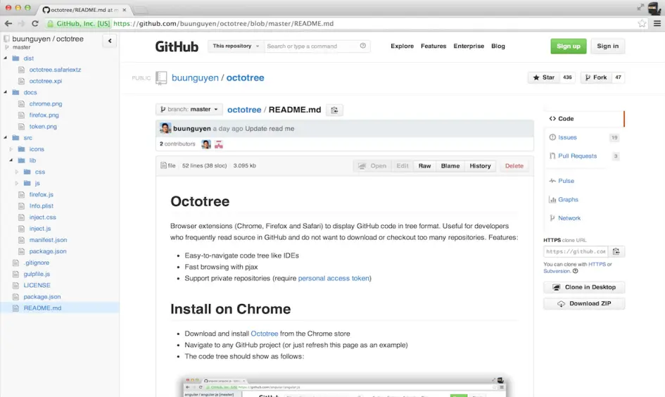 OctoTree 是一个浏览器插件,它可以让你在Github 看代码时,左边栏会出现一个树状结构,就像我们在IDE 一样。当我们看一个项目的结构,或者想看具体的某个文件,这样就会很方便。