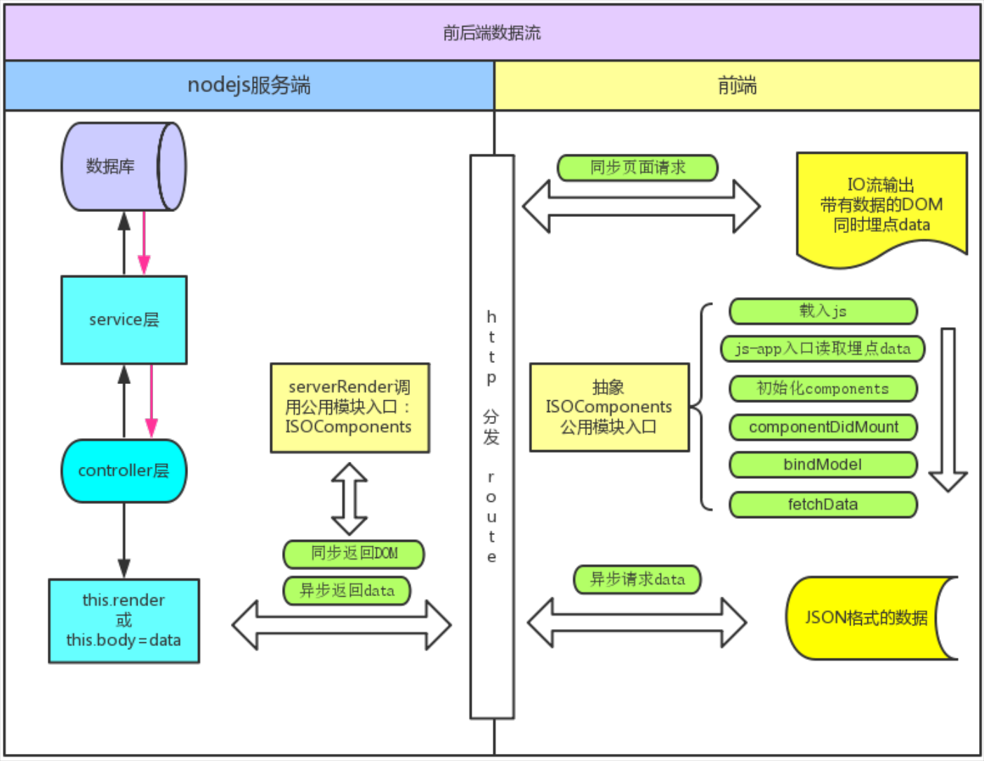 这样可以解决数据层的同构!但我并不认为这是一个好的方法,好像回到 JSP 时代。