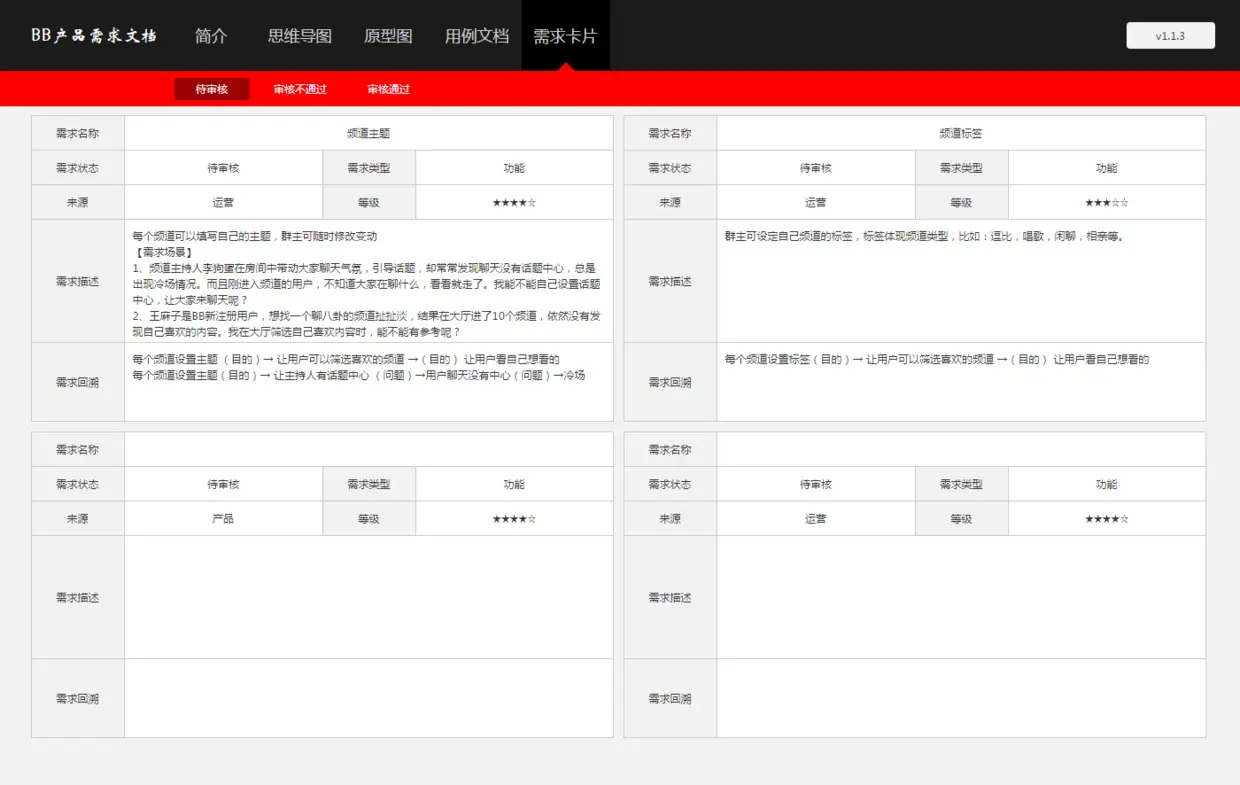 需求卡片 这个页面到现在也已经放弃了,因为对需求的整理,最好还是在Excel中
