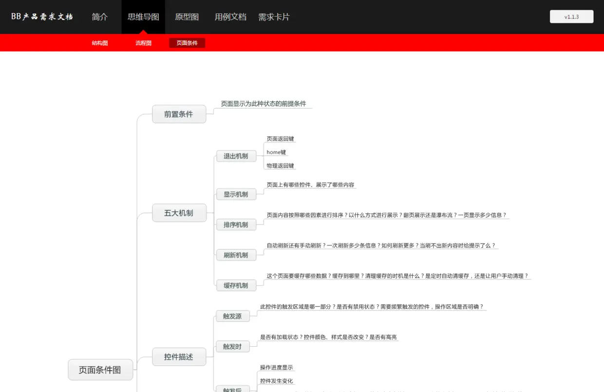 >思维导图 这个版块下,全是产品相关的图表,比如产品结构图、信息结构图、流程图等。我曾经尝试用Axure自带的流程图部件来画流程图和思维导图,但得出的结论是,太耗时间,而且布局很费力。所以,这里我都是用mindmanager导出图片