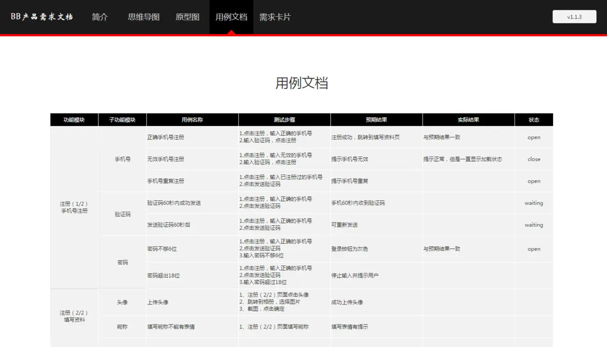 用例文档 其实,这个用例文档的页面,是我闲的无聊时做的,并没有什么卵用,测试人员也不会使用此表,更加方便的还是Excel