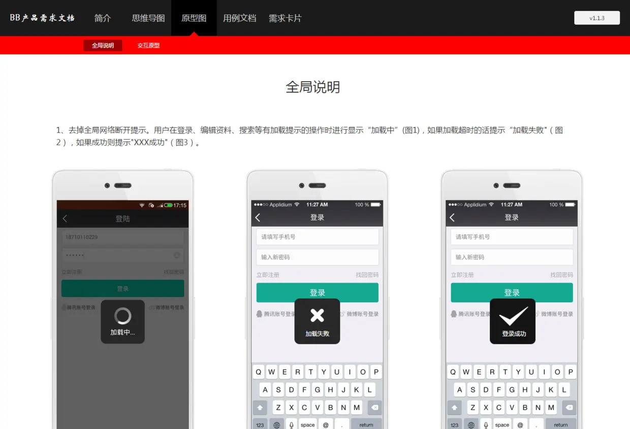 全局说明 这个页面其实是展示整个产品的设计规范,一些很多页面通用的规则都可以在这里展示