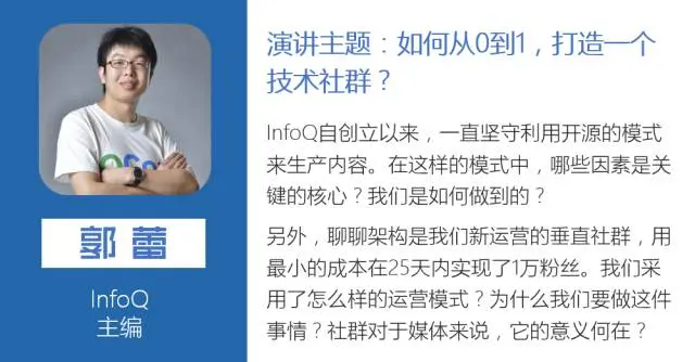 人工智能、云计算、数据库、技术创业、移动、架构、安全、容器、语言等热门技术领域的意见领袖汇聚一堂;