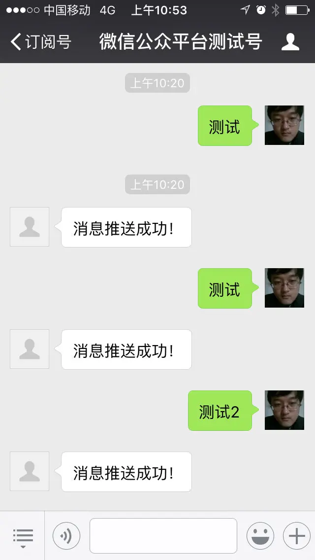 有兴趣的同学可以注册一个微信订阅号,配置好服务器,自己尝试一下~
