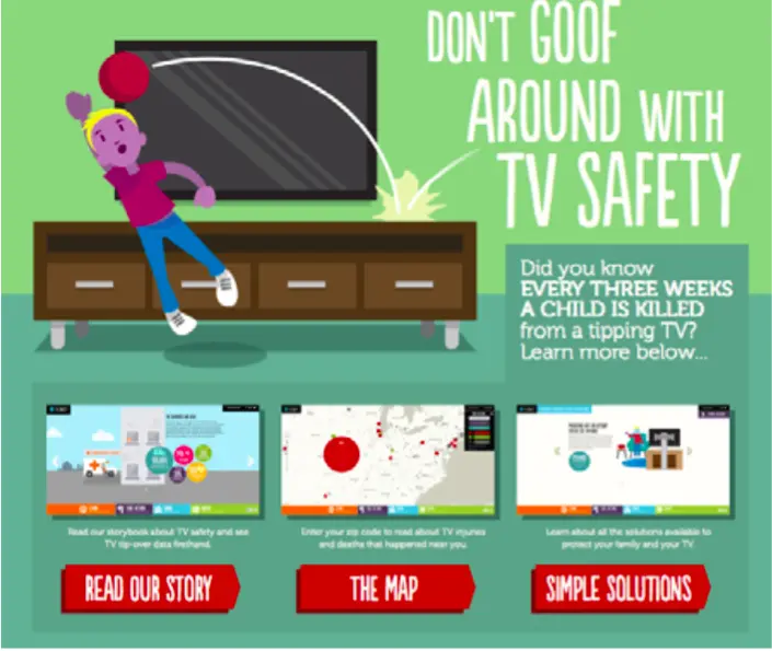 利用冷暖色之间的对比能将眼球吸引至或脱离界面的中心。在TV Safety.org 的例子中红色的导航按钮在绿色的映衬下是多么的显眼。在Web UI Patterns 2014中我们讨论了更多这方面的内容。