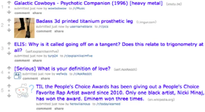 让我们看一下传统的链接处理方式。下图中的Reddit中的链接并没有什么创新,通过网站链接的文字链接到其他网站。