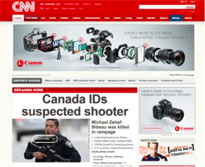 3. 内涵 — 每一种颜色都会引起一种特别的情绪:明亮的暖色(红、橙、黄)会带给人能量,使人警觉。而较深的冷色(绿、蓝、紫)会让人放松,平静。CNN的导航栏使用红色来使标题更加醒目,这是运用颜色将新闻内容分开。
