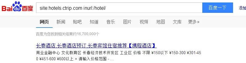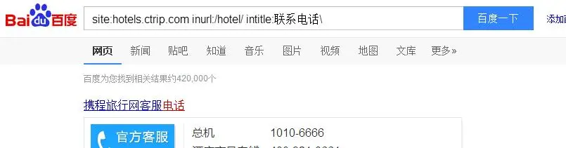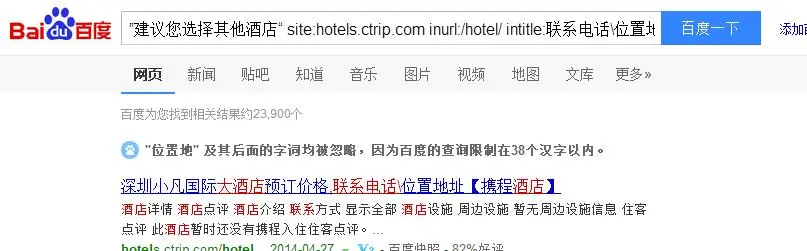 于是第三次尝试搜索:【site:hotels.ctrip.com inurl:/hotel/ intitle:联系电话\位置地址 】
