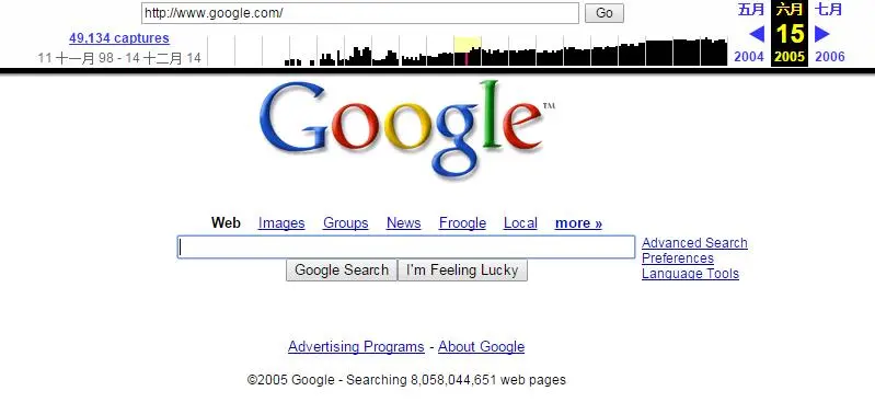搜下Google试试,我们可以看到Google首页的改版演化: