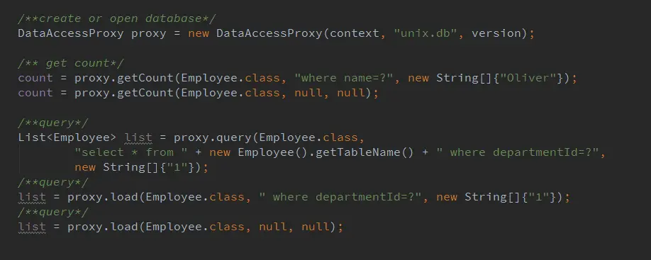 (1)基于SQLiteOpenHelper,支持任何复杂SQL语句。多表联合的复杂查找操作支持很到位。此外,对于要支持加密库sqlcipher,稍微一下SQLiteOpenHelper包名即可。