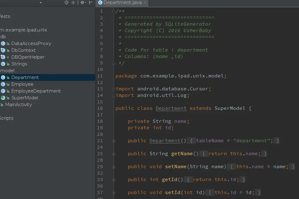 代码生成器项目主页:https://github.com/ThePacific/sqlite-generator-android