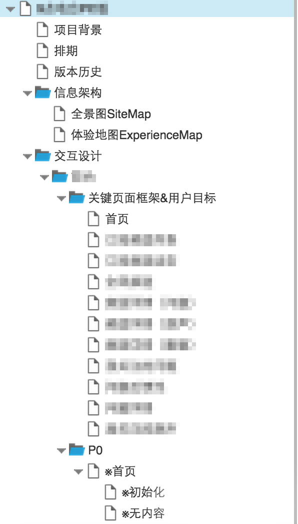 最后放一张自己的设计文档结构截图吧,虽然Axure很多人黑,但我觉得在文档结构呈现这块真的是最好用的。