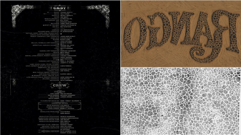 动画电影《兰戈》也没有可自定义的字体,在为这部电影设计字体时参考了48种字体样式,我们花了大把时间做出了这款肌理感丰富的文字。