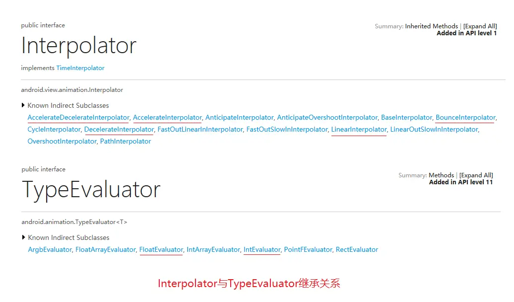 如果对Android动画了解的比较深刻,应该都有同感,只有熟练的掌握自定义Interpolator和TypeEvaluator的技巧,才能做出一些酷炫的动画,那么,本篇博客就会带大家去揭开自定义Interpolator和TypeEvaluator的面纱一探究竟!先来看Interpolator和TypeEvaluator的继承关系如下图: