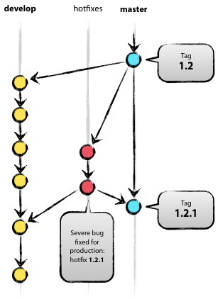 这样做的显而易见的好处是不会打断正在进行的develop分支的开发工作,能够让团队中负责新功能开发的人与负责代码紧急修复的人并行的开展工作。