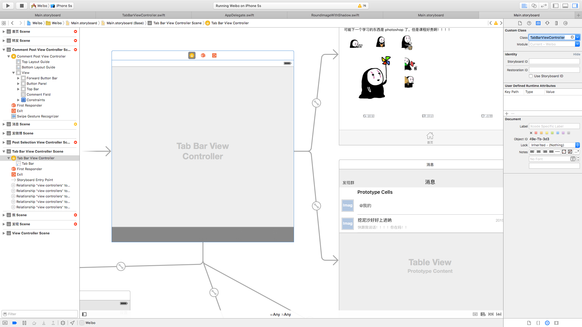 微博客户端 TabBar 中间按钮和其他按钮不一样,一个是样式不一样,一个是点击事件不一样。