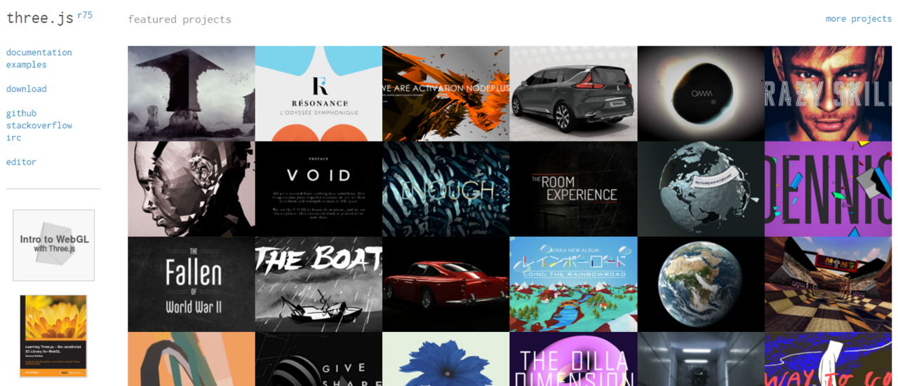 Three.js 是一款运行在浏览器中的 3D 引擎,你可以用它创建各种三维场景,包括了摄影机、光影、材质等各种对象。你可以在它的主页上看到许多精采的演示。