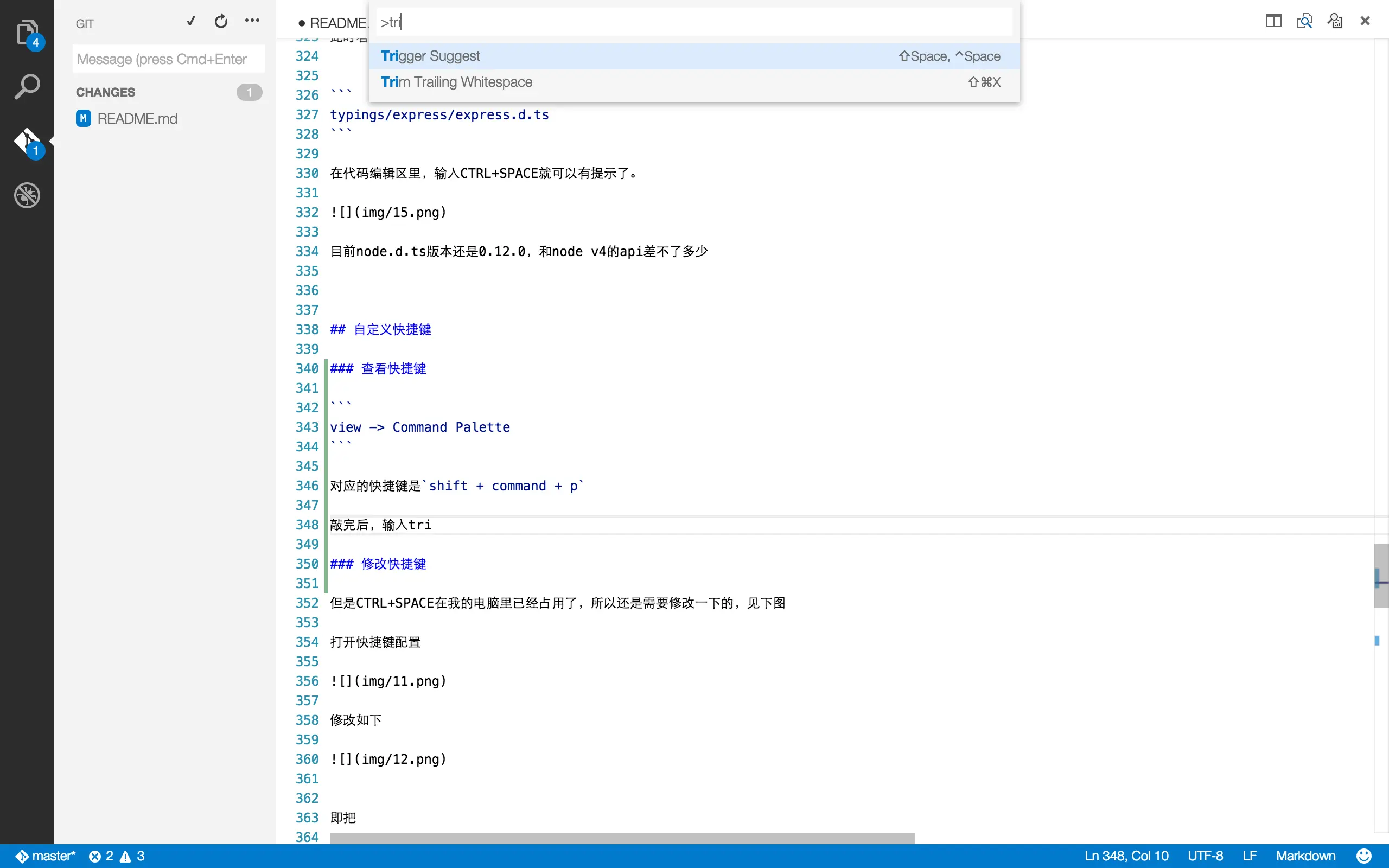 - master代表当前git分支是master分支