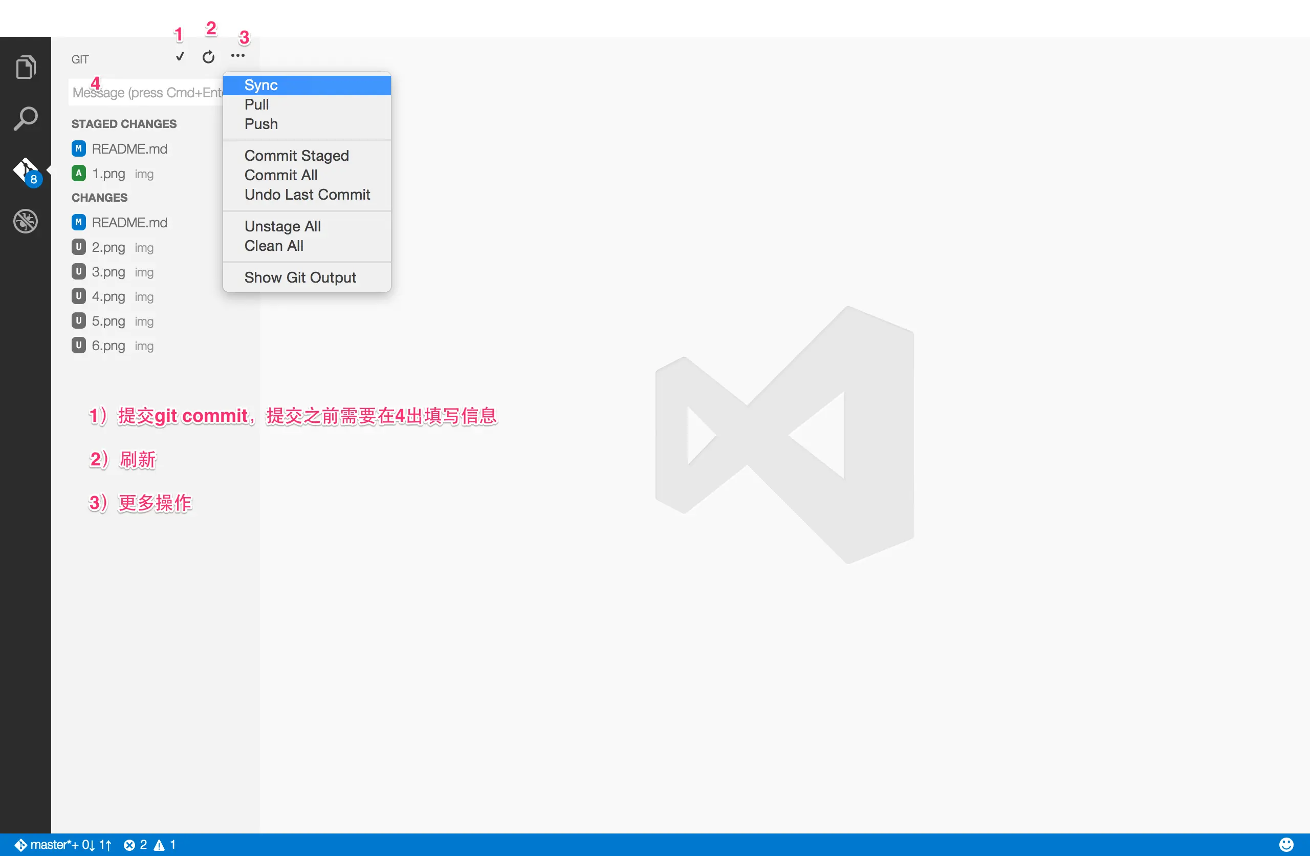 - 1↑ 代表本地有1个提交需要push到服务器