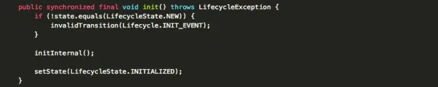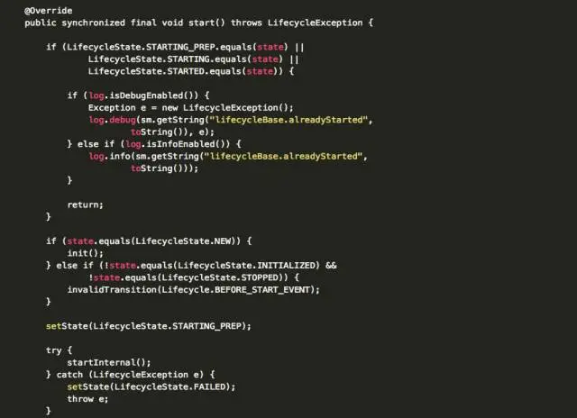 代码清单11还说明启动容器完毕后,需要做1种检查,即如果容器启动异常导致容器进入LifecycleState.FAILED或者LifecycleState.MUST_STOP状态,则需要调用stop方法停止容器。