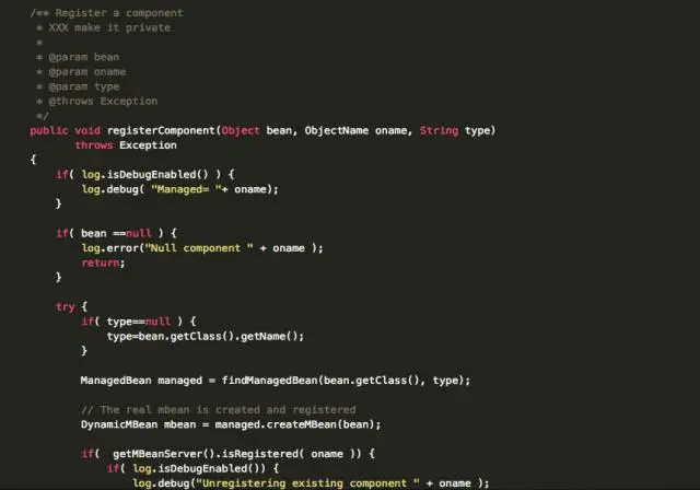Registry的registerComponent方法会为当前容器(如StandardServer)创建DynamicMBean,并且注册到MBeanServer,见代码清单10。