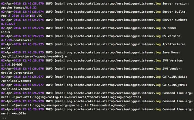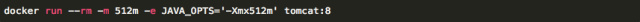 如果使用官方的Java镜像,或者基于Java镜像构建的Docker镜像,都可以通过传递 JAVA_OPTS 环境变量来轻松地设置JVM的内存参数。比如,对于官方Tomcat 镜像,我们可以执行下面命令来启动一个最大内存为512M的tomcat实例