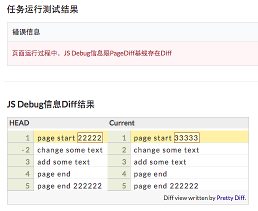 而对于使用者来说,只需要设定该行为动作使用pagediff即可,声明了之后,行为回放的过程执行到这一步会进行跟设定的pagediff基线进行diff比对,有diff会上报错误,并且可以可视化的看到Diff Highlight的结果。