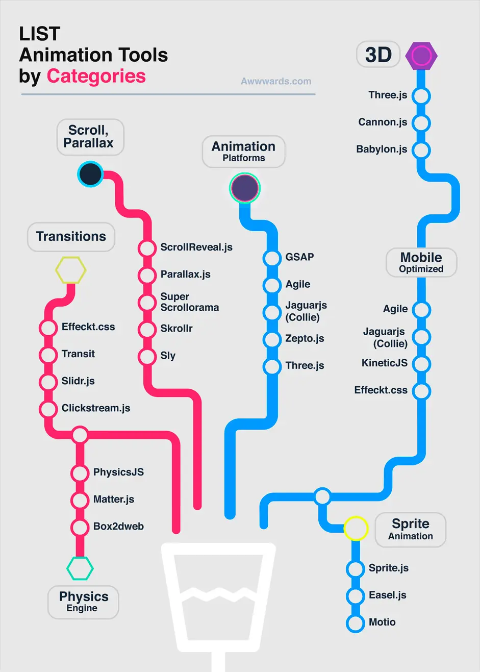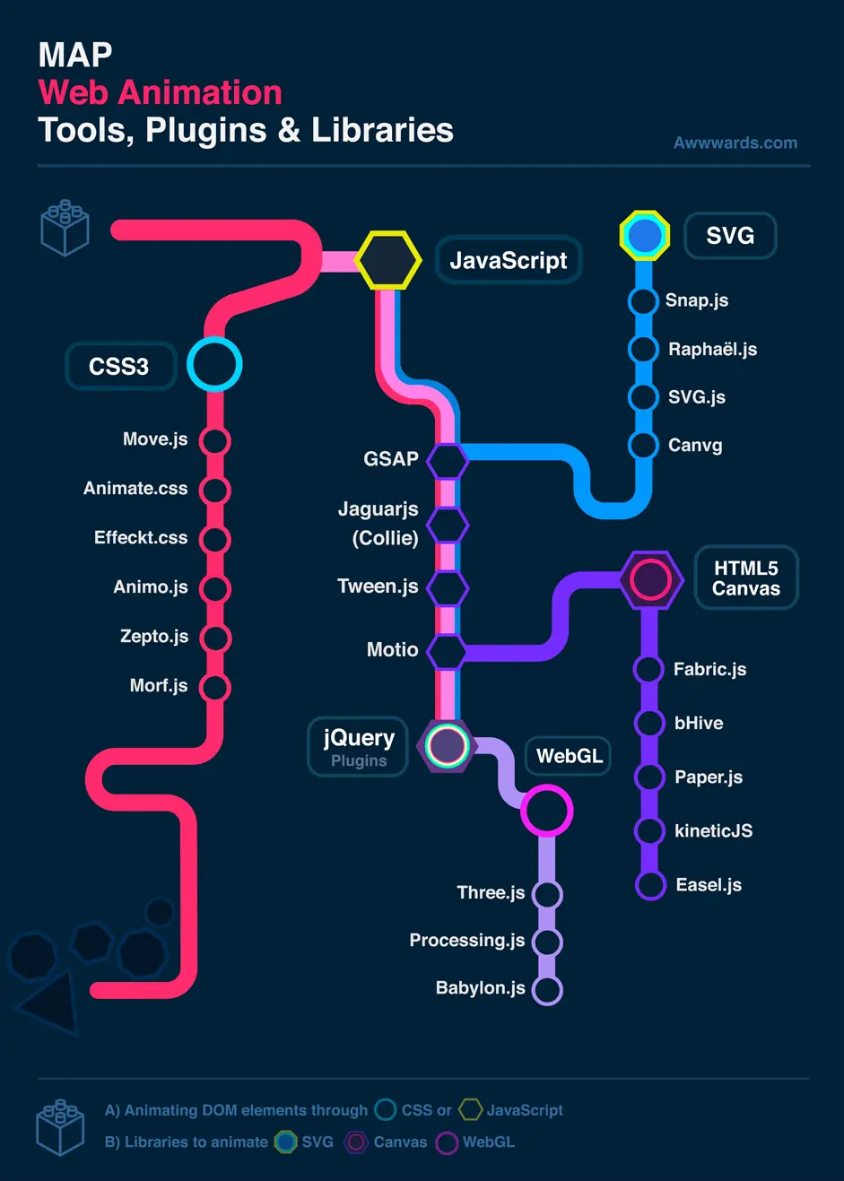 @awwwards-team整理了一份Web Animation Infographics。图中提供了有关于Web Animation各种资源: