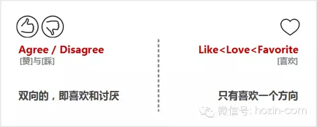 Agree/Disagree是双向的,即喜欢和讨厌;Like只有喜欢一个方向;